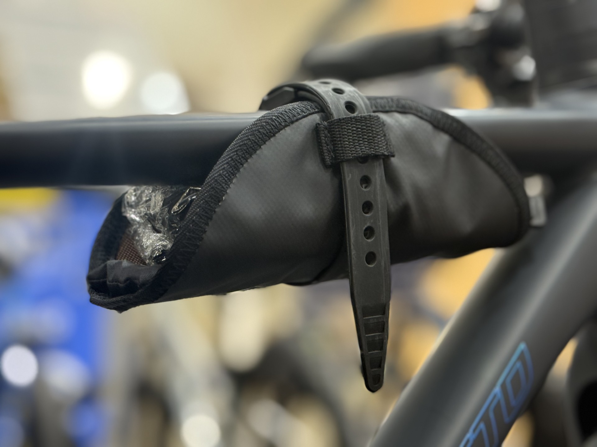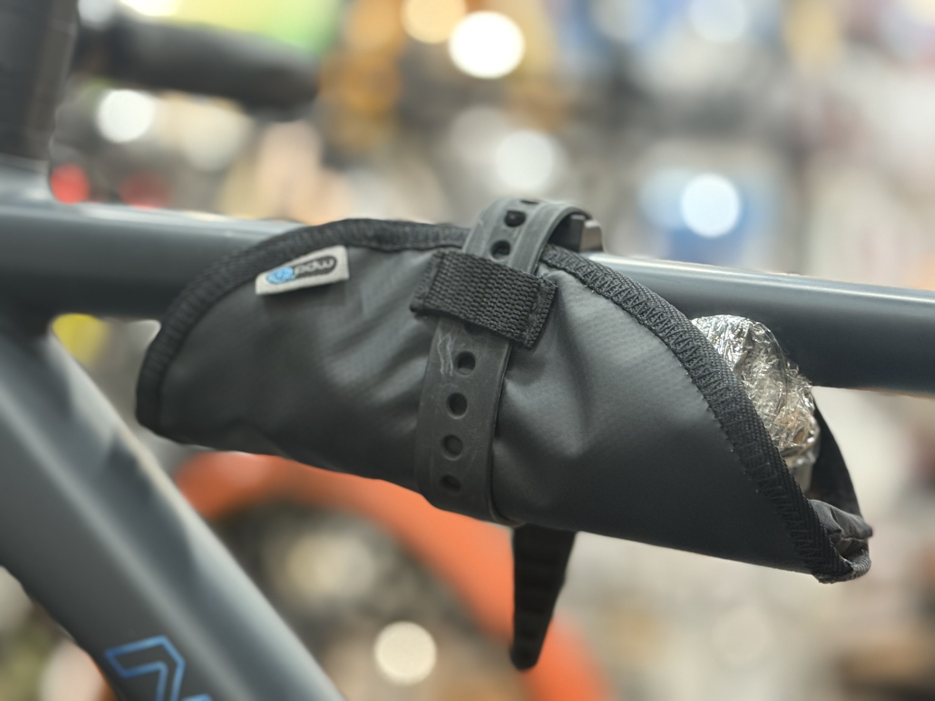 また、直接フレームに触れる部分には柔らかい素材が使われており、走行中に擦れてフレームが傷つく心配も少ないと感じました。振動によるズレや不安感もなく、安心して使える点は大きなメリットです。デザイン性だけでなく、実用面でもよく考えられたアイテムだと感じました。