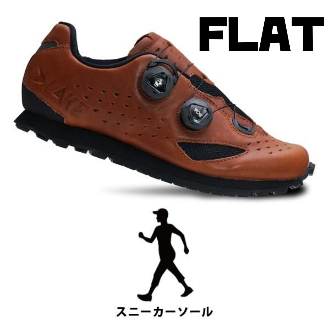 ビンディングが苦手な方や普段使いもしたい方に向けたフラットペダル対応モデル。ロードシューズ譲りのフィット構造に、ラバーソールを組み合わせ、本革アッパーとBOAダイアルの快適な履き心地を実現。EVAフォームとラバートレッドの積層ソールは、ペダル操作と歩行の両方に適した硬さです。上質なフルグレインレザーを使用し、耐久性と質感にも優れ、スニーカー感覚で日常使いも可能。