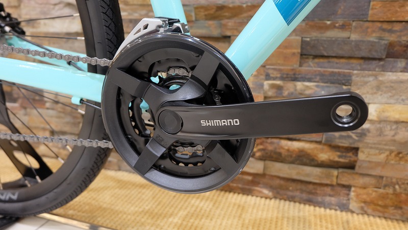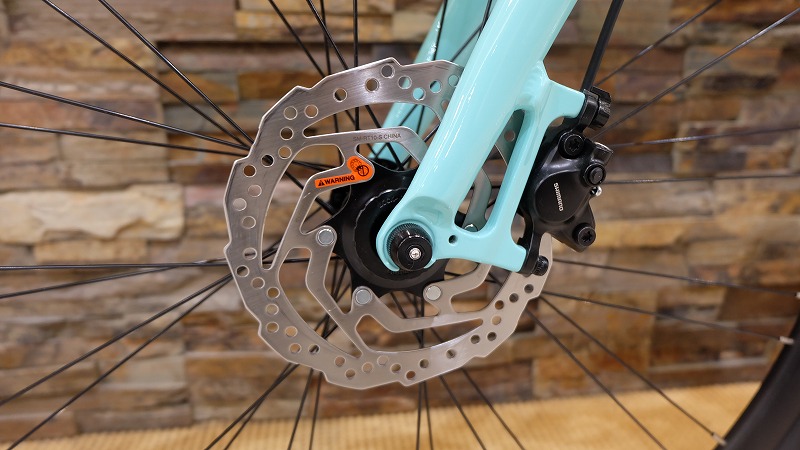 シマノパーツで統一されたコンポーネント(ギア、ブレーキ)は、性能・コスト・信頼の三拍子揃っています。メンテナンスなどで交換になった際もランニングコストが抑えられます。