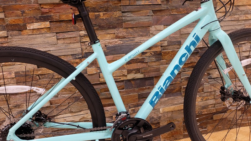 いかがでしょうか。はじめてスポーツバイクに乗られる方に最適なC-SPORT。他にもクリーム系の色やブラック、リムブレーキモデルも店頭に展示中ですので、ぜひご覧になってください。ご来店お待ちしております。