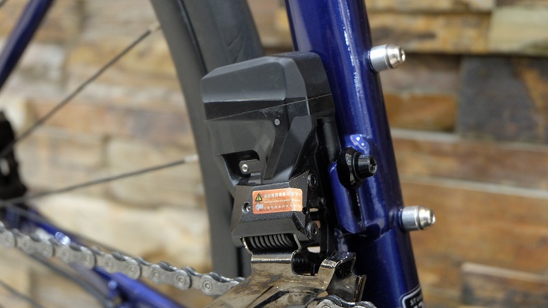 そして、このバイク最大の特徴とも言えるのがEDS(電動無線組)の搭載です。ワイヤーを使用しない電動無線変速は、非常に軽い操作感で、確実かつスピーディーな変速を可能にします。ボタン操作ひとつで変速が完了し、登りや高負荷時でも変速ミスが起きにくいため、走りに集中できます。ワイヤーが不要なことでハンドル周りがすっきりし、見た目が洗練されるだけでなく、メンテナンス性が高いのも魅力です。変速調整の頻度が少なく済むため、日常的な管理が楽になる点も、電動無線ならではのメリットと言えるでしょう。