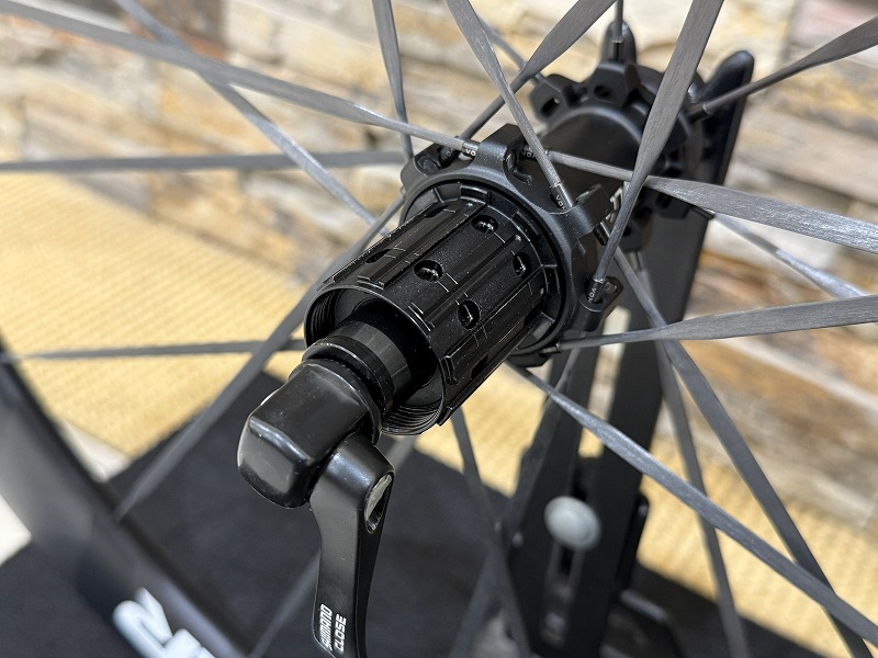 ハブは前後で298gの高回転ハブなので、足を止めた時の回転も良く、スピードが一気に落ちないので体力の回復もしやすくなり、登坂やストップアンドゴー時の快適性も向上しています。ロングライドやレースでも活躍するホイールになりました。
