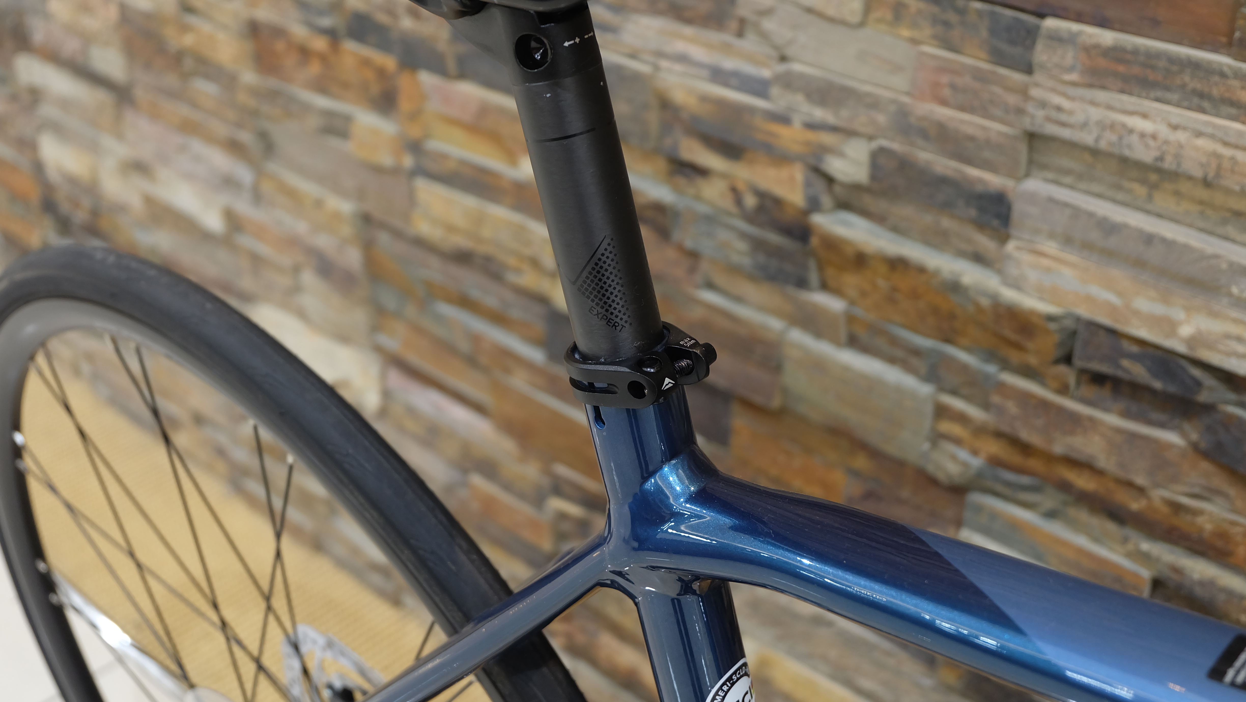 アルミフレーム×カーボンフォークは主流になりつつありますが、シートポストまでもがカーボンになっています。かなり軽量化ができており、路面からの細かな振動も吸収してくれるため疲労が減ります。