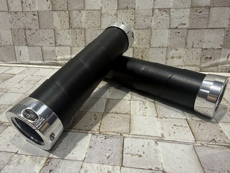 アルミ製のエンドパーツで両端から固定する「ロックオン」タイプの為、しっかりと装着できます。そしてレザーが摩耗してもレザーのみ張り替えが出来る為長く愛用できます。替えのレザーはお取り寄せとなります。