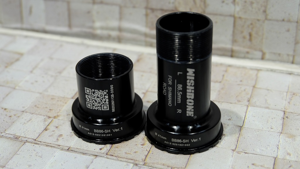 さらにWISHBONEのBBは、スリーブ部分の左右両側にネジが切られた構造を採用。左右から締め込むことでフレーム内でしっかりと固定され、高い保持力を発揮します。ねじ込みによってユニットが一体化するため、ベアリング位置のズレを抑制し、よりスムーズな回転へとつながります。