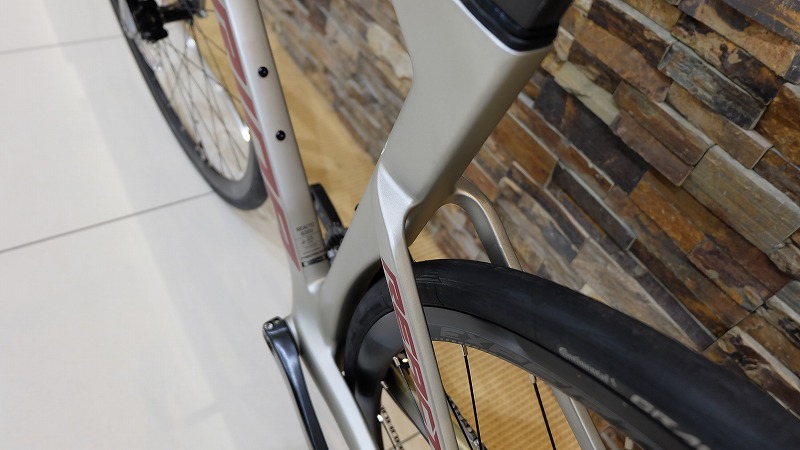 ひたすらエアロ重視の切り立ったデザイン。前フォークの先端が切り落とされているようなデザインはエアロならでは。
