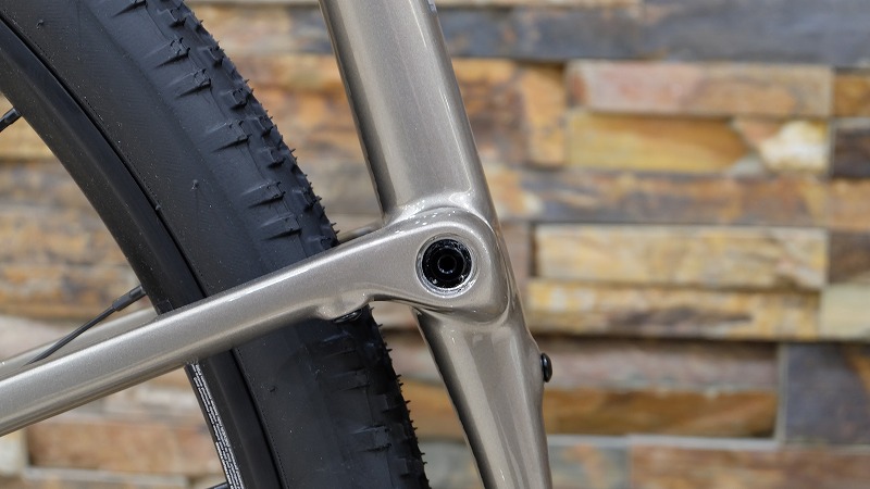 今回紹介するバイクは、いわゆるグラベルバイク。悪路でも舗装路でも走れる自転車です。悪路でも抜群のコントロール性を発揮するため、ヘッドチューブ角を寝かせ、フォークオフセットを長めに設計しています。