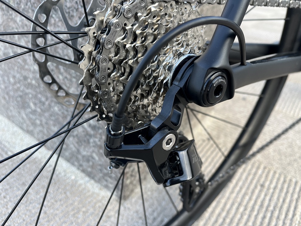 さらにCAAD14では、UDH(ユニバーサル・ディレイラーハンガー)にも対応しました。これは将来的なコンポーネントの互換性や、トラブル時の対応力を高める要素であり、レース用途だけでなく長く安心して使えるフレームであることを示しています。最新規格を取り入れながらも、実用性を重視している点は好印象です。