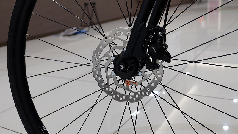 軽い力でレバーを引くだけでもしっかりとブレーキが効くため、初めてスポーツバイクに乗る方でも安心して操作できます。また、ディスクブレーキは雨天時でも制動力が落ちにくいのが特徴で雨の日の通勤・通学でも安定したブレーキ性能を発揮してくれます!
