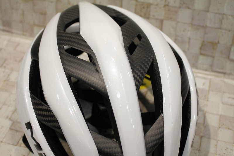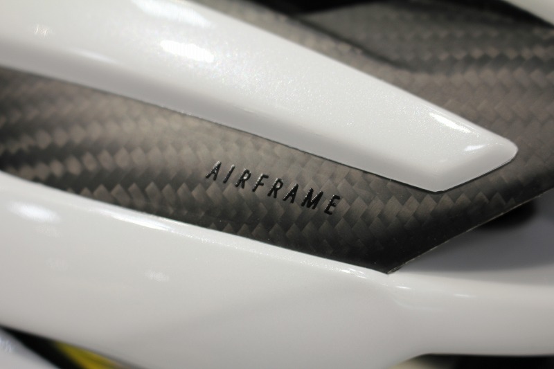 そして、このヘルメットの最大の特徴ともいえるのが「3Kカーボン構造」です。内部にカーボンフレームを採用することで、ヘルメット全体の強度を高めながら軽量化を実現しています。さらに、内部構造に余裕が生まれることで空気の通り道も確保され、通気性の向上にもつながっています。軽さ・強さ・涼しさを高いレベルで両立している点は、このモデルの大きな魅力です。