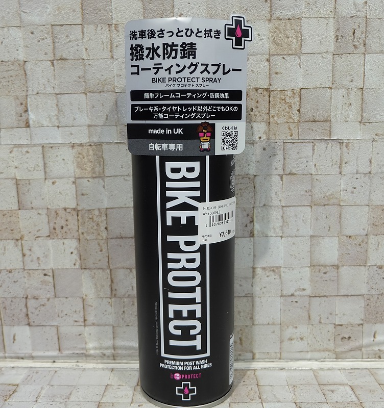 ナノテックバイククリーナーかウォーターレスウォッシュで洗車が済んだら、次はコーティング・プロテクトです。バイクプロテクトはフレームやパーツを保護するコーティングスプレー。水を追い出し、防錆、撥水、防汚のコーティングができます。若干艶は出ますが仕上がりは最高!マット塗装にもOK