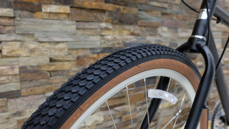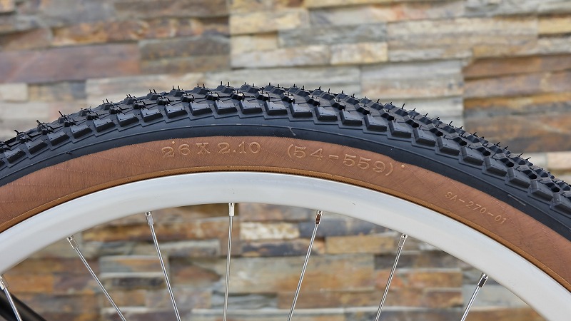 26×2.1インチのタイヤは太すぎず、街乗りでも快適に乗れます!街乗りオンリーであれば、スリックに変えてもいいかも