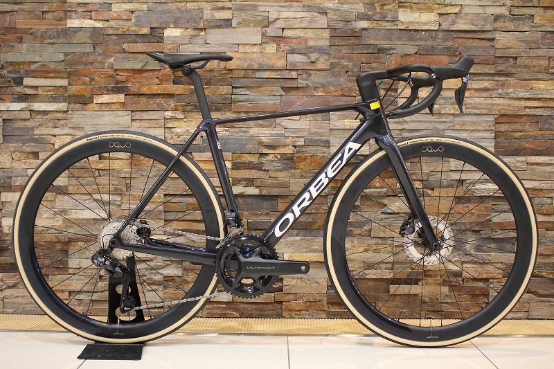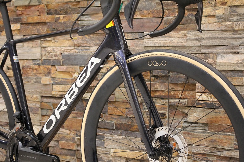 ORBEAの最上位カーボン素材を使用したOMXフレーム(LTDシリーズ)に、オリジナルパーツブランド「OQUO」のカーボンホイール、アルテグラDi2、4iiiiパワーメーター、ワンピースハンドルバーを標準装備した、戦闘力の高いハイエンドモデルです。