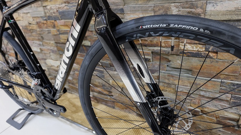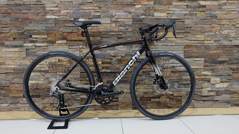 レーシングブランドのイメージが強いビアンキですが、このモデルは初心者でも扱いやすい乗り心地と設計が特徴です。フレームはアルミながらしっかり作り込まれており、前傾過ぎず楽な姿勢で乗る事ができるので長時間乗っても疲れにくいのが魅力です。さらにカーボンフォークも採用されており、路面からの衝撃を和らげてくれるので初めてのロードでも安心して走れます。