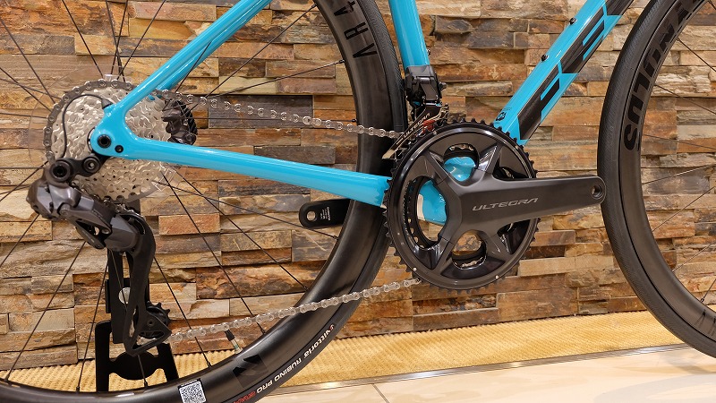 コンポーネントはレースでも使用されるULTEGRA Di2を標準装備されています。105 Di2よりも約200~300g軽く、変速の精度や反応速度もワンランク上です。さらにサテライトスイッチの増設が可能で、STIレバーからサイクルコンピューターの操作も行えます。
