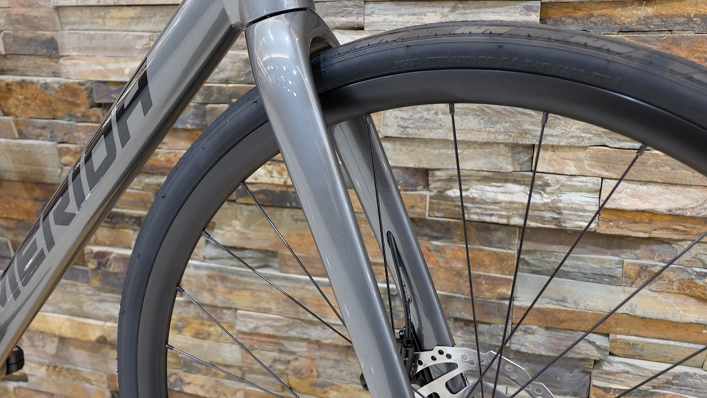 さらに、このモデルには比較的太めのタイヤが標準装備されています。一般的なロードバイクより安定感が高く、段差や少し荒れた路面でも安心して走行可能。街乗りからロングライドまで幅広く使えるため、初めてのスポーツバイクとしても扱いやすい仕様です。