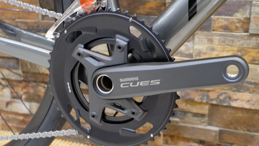 また、この2026年モデルには新世代コンポーネント「SHIMANO CUES」2×10速が採用されています。CUESは通勤や街乗りからスポーツライドまで幅広い用途を想定して開発されたシリーズで、耐久性と扱いやすさを重視しているのが特徴。LINKGLIDEというドライブトレイン技術により変速時のショックが少なく、スムーズで安定したシフティングを実現しています。さらにコンポーネントの互換性も高く、長く安心して使える点も魅力です。
