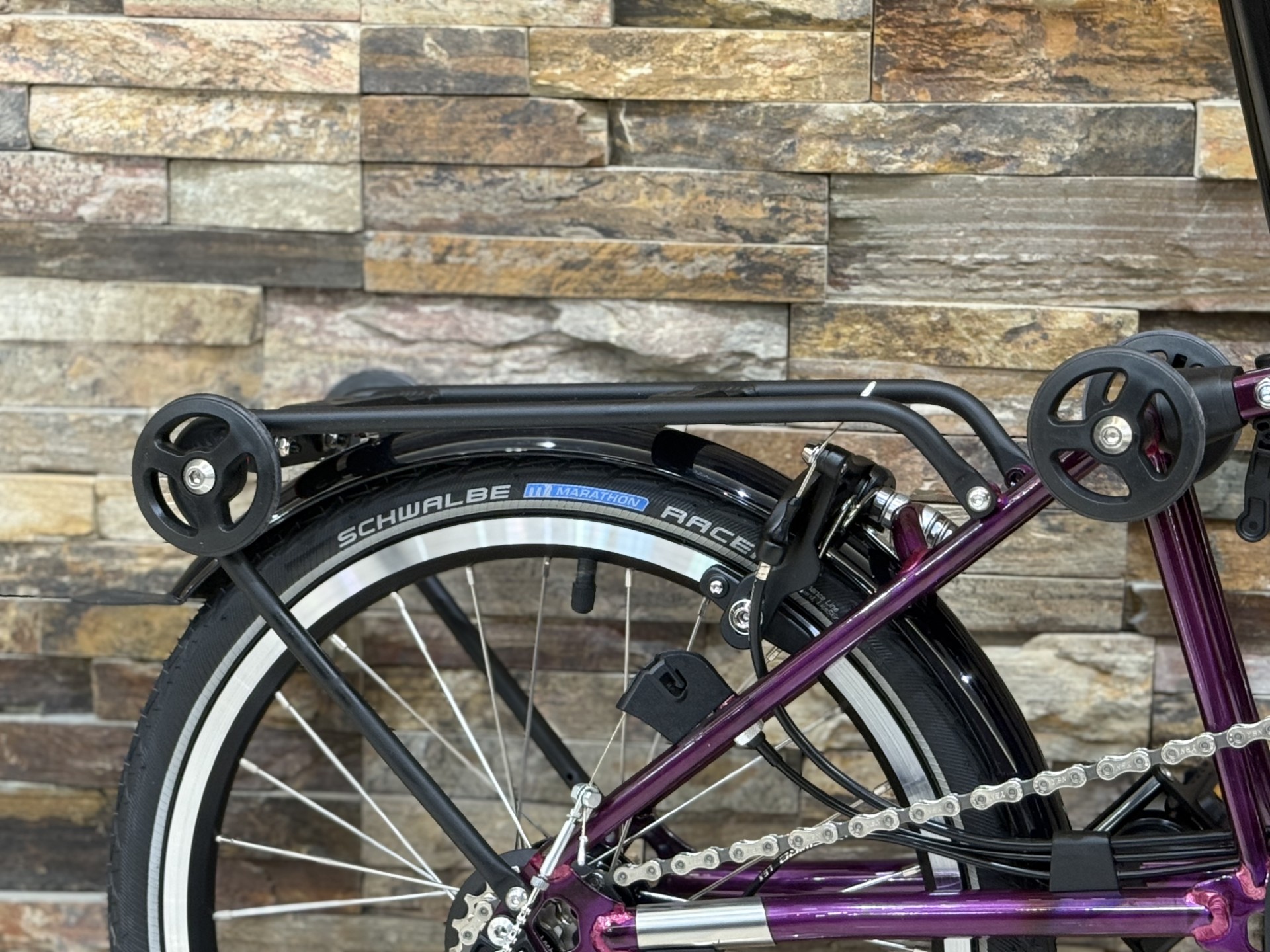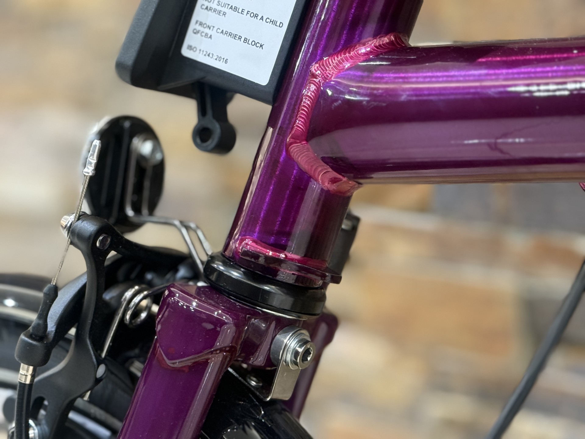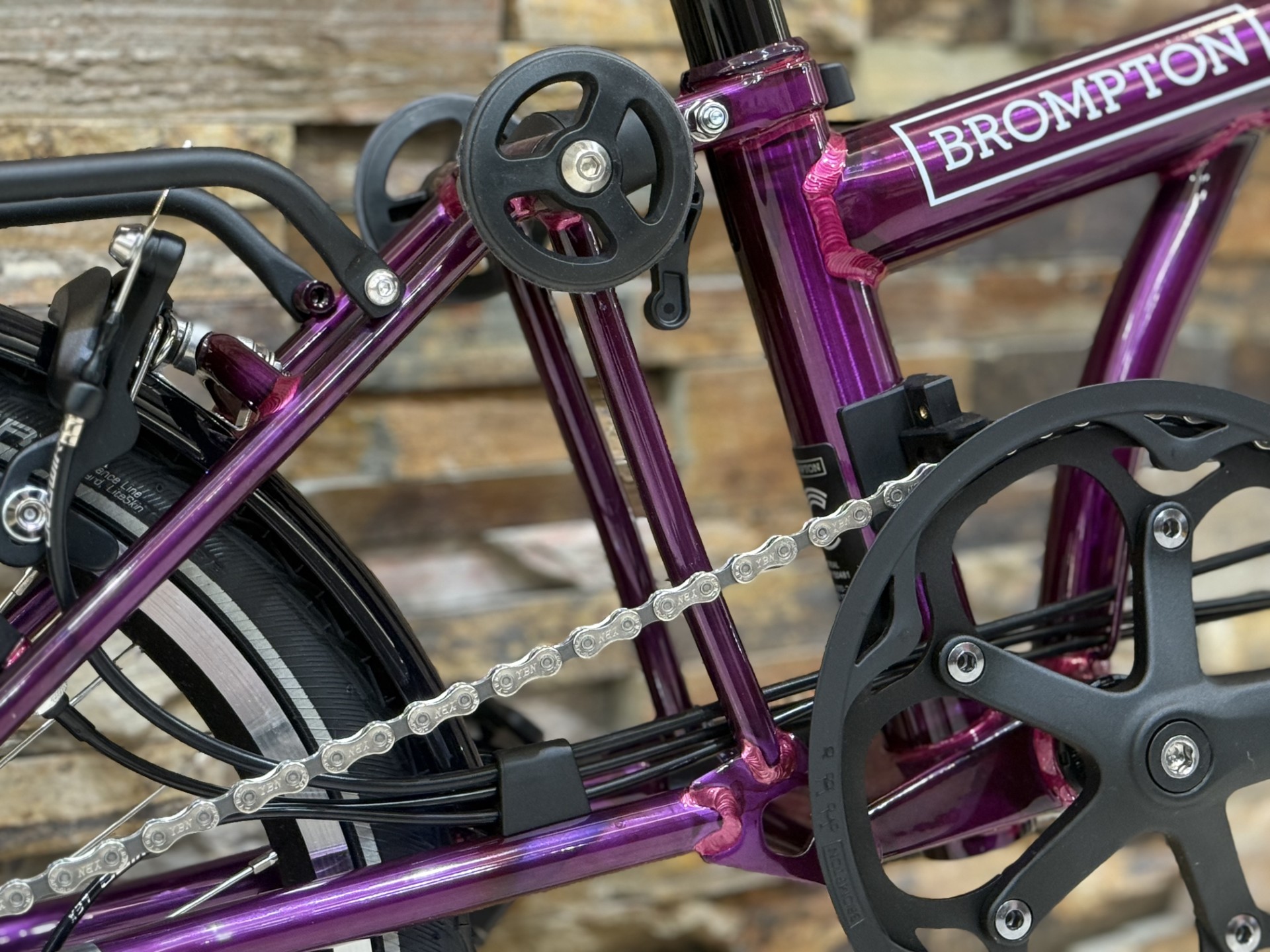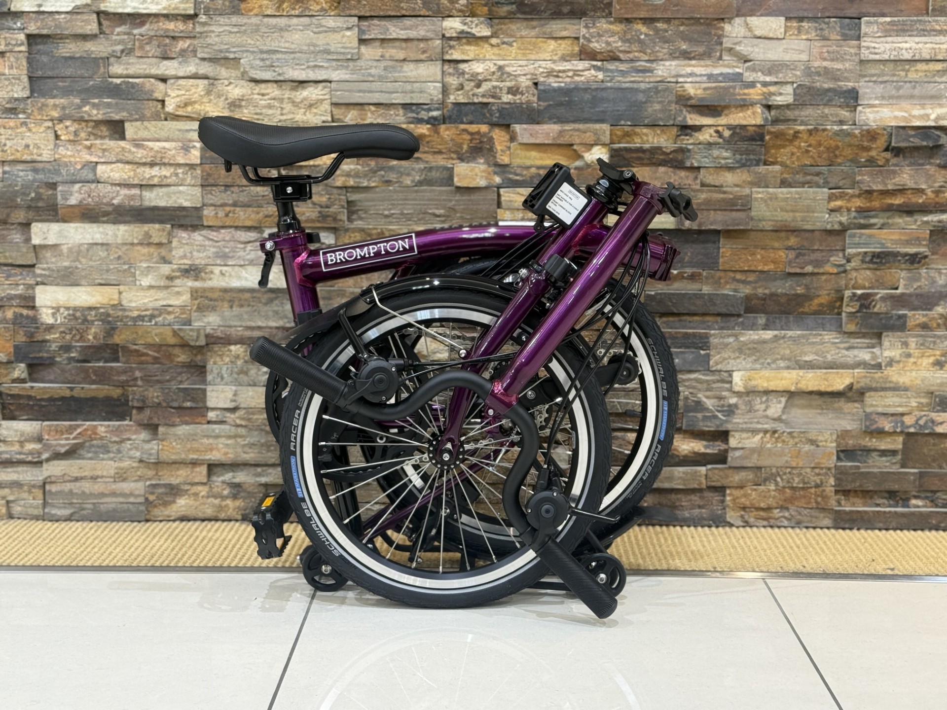 小径車好きが一度は乗ってみたいイギリスブランド「BROMPTON」。今回ご紹介するモデルはベーシックモデルのC LINE。クロモリフレームで構成されており、しなりが出て乗り心地も安定しています。アメジストラッカーはラッカー塗装を施されています。いわゆるスペシャルエディション的な位置で価格が少し高いです。しかしそれ以上に高品質な見た目となっており存在感溢れます。所有感もかなり満足してくれる一台に違いありません!