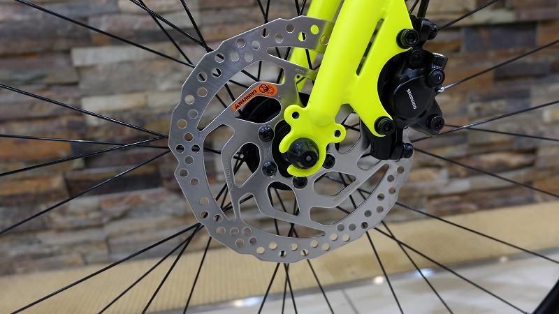 推しポイントとしては、色や設計だけではありません!走りに重要なギアや安全に大きく影響するブレーキ、それらがシマノパーツで固めらており、性能は十分。特に油圧式ディスクブレーキは軽い力でもしっかりとブレーキが効くので、手が小さな方や下り坂が通勤通学ルートにある方、長距離ライドを想定している方にオススメです。またトラブル、メンテナンス時にもシマノは都合がつきやすいので、修理の日数も短く済むかもしれません。