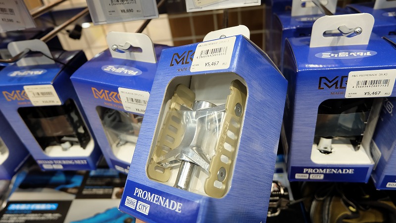 3つ目も三ヶ島、プレッツェル。丸形で広い踏み面がリラックスした姿勢にマッチ。リフレクター内蔵で通勤通学にも◎