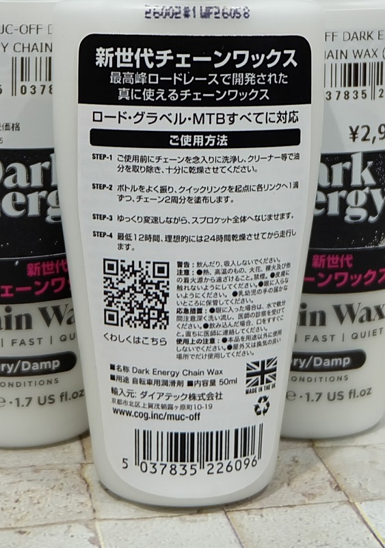 【新商品】ダークエナジーを使ってみないか《Muc-Off Dark Energy Chain WAX》