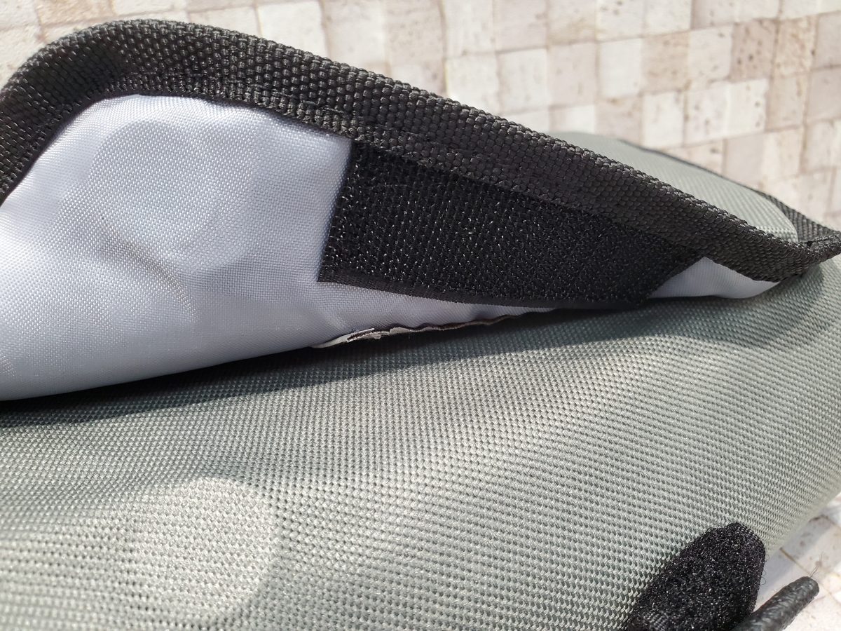 裏側と下部にはハンドルとトップチューブなどに巻き付けるためのベルクロが。
