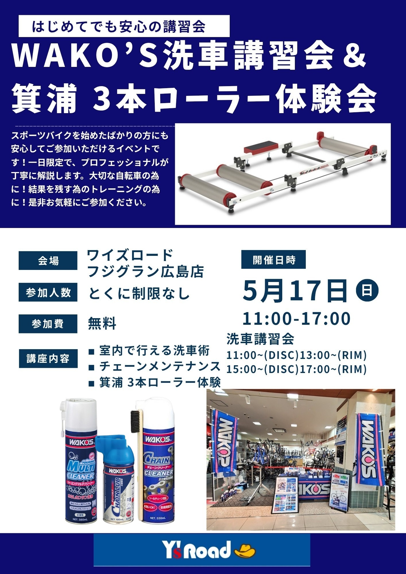 【同時開催】WAKO’S洗車講習会+箕浦3本ローラー体験会 ≪5/17(日)のみ限定開催≫