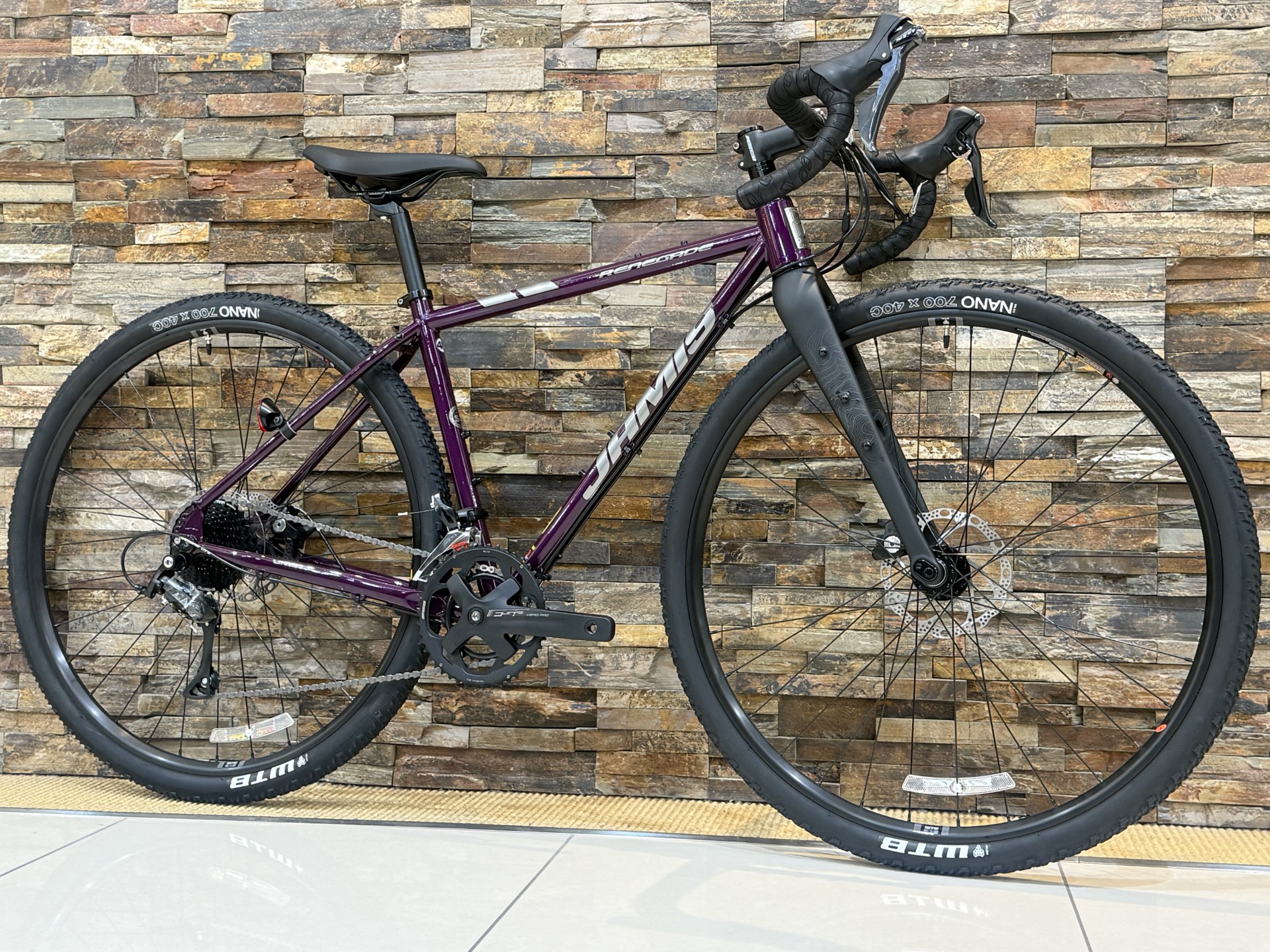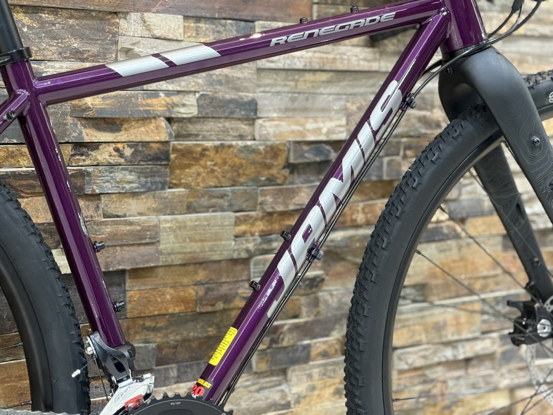カーボンロードが流行する中、JAMISはクロモリ(スチール)にこだわりがあるブランド。今回ご紹介する車体は良質なクロモリフレーム、見た目カッコいい、コスパ良。と三種の神器みたく条件が揃っています。アドベンチャーバイクって落ち着いたアースカラーが多いんですけど、これは光沢のあるディープパープルでかっこいい、めちゃ好みな感じです。