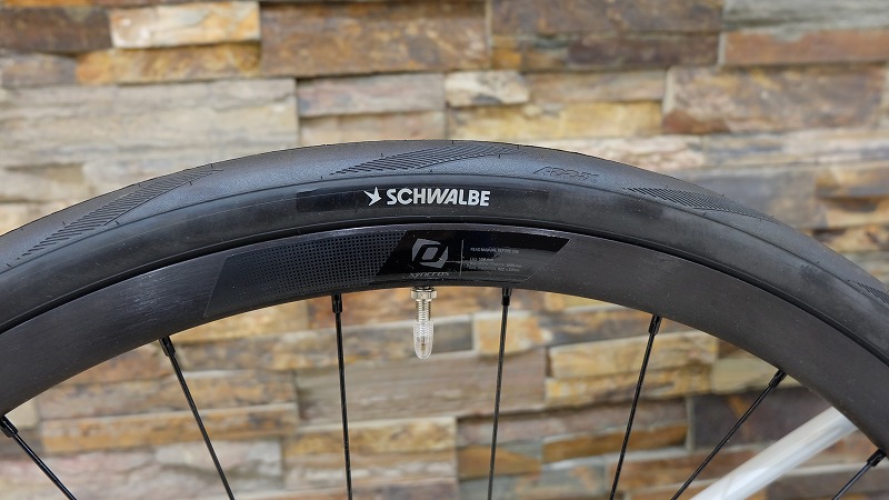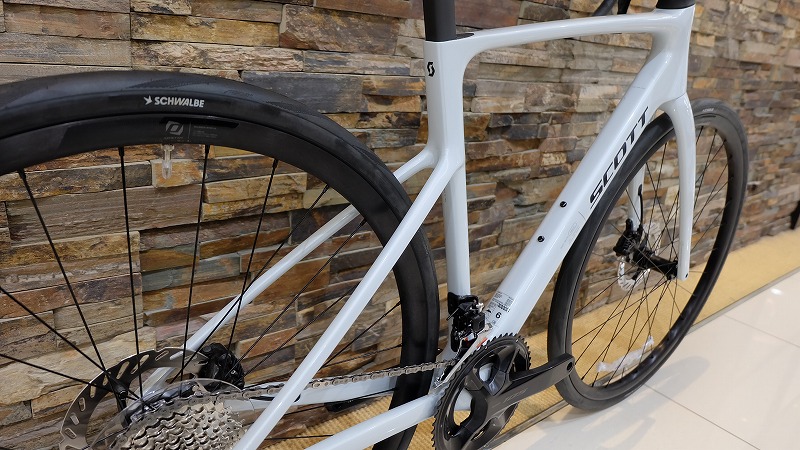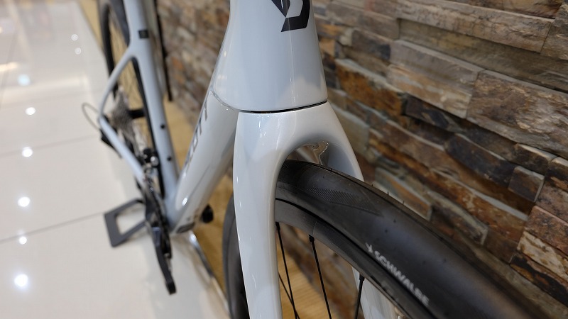初期装備はシュワルベONE34c(!)スコットの設計思想から、32~35cあたりを想定しているのがわかります。いうてエアロフレームです。