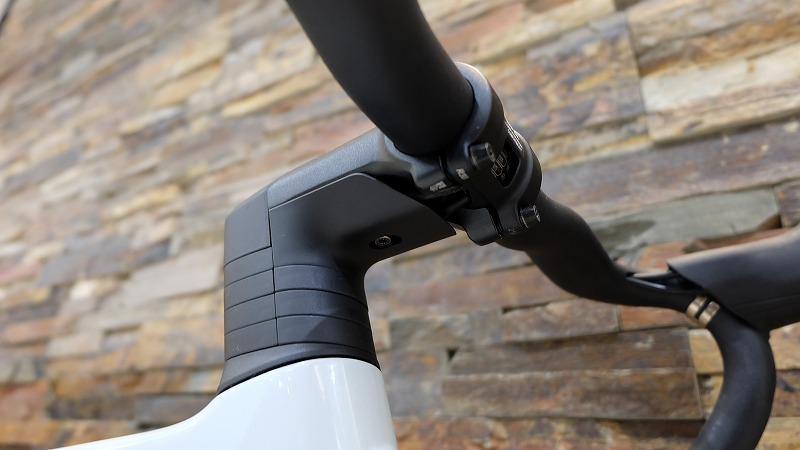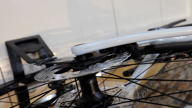 リラックスしたポジションを目指したジオメトリから、楽しく乗ろうという意図が。小さいスマイルマーク。