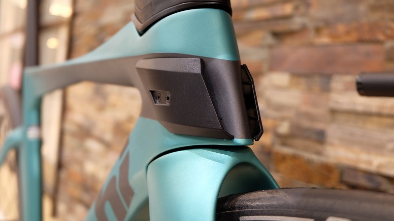 フレーム形状は上位グレードRCと同一で、徹底的にエアロ性能を追求しています。ヘッドチューブ左右にはエアディフレクターを装備し、走行風を整流して後方へスムーズに流すことで、ライダーの脚まわりに低圧ゾーンを形成。これにより空気抵抗を効果的に低減し、高速巡航時のアドバンテージを生みだすことができます。