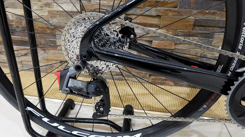 新作の発表もあったサーヴェロのカレドニア。前モデルとなりますが、スラムの電動コンポで組まれたお求めやすいカレドニアありますよ。