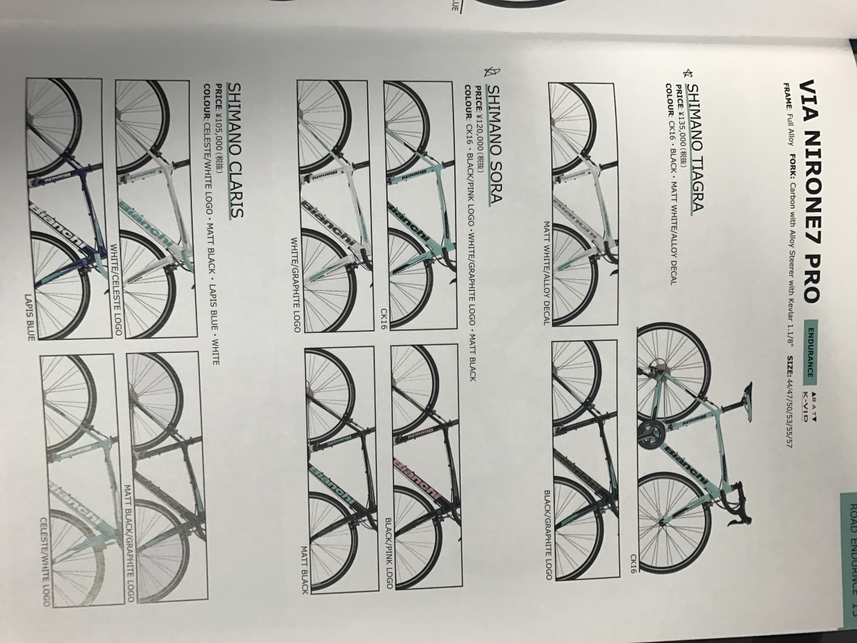 17年は105までラインナップされていましたが、18年からはティアグラまでラインナップ。