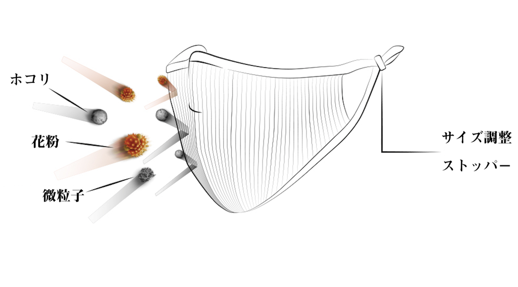鼻筋には花粉の侵入を防ぐ「ノースクリップ」が付いています。