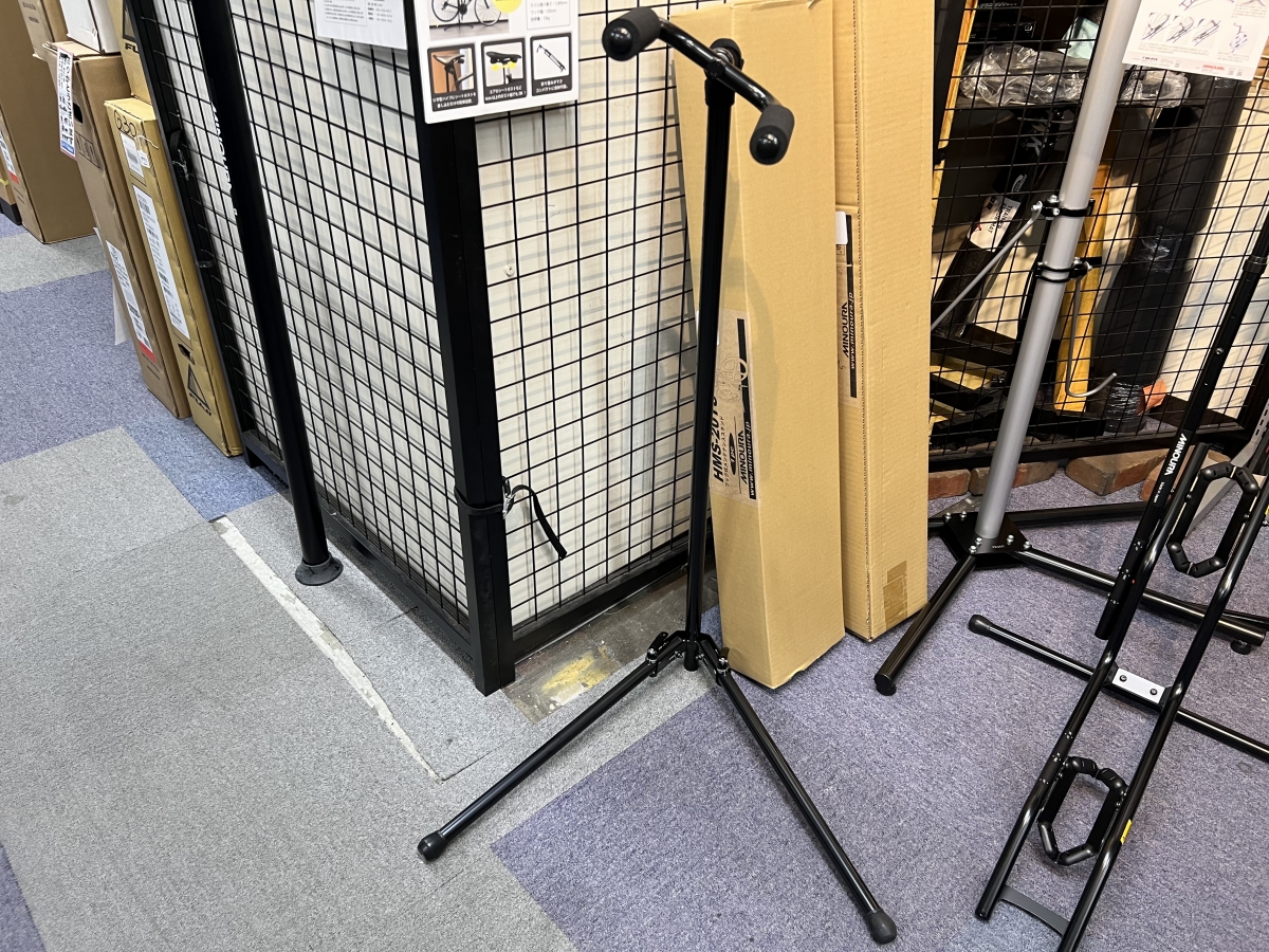サドル下で支えるワークスタンドです。後輪が浮いているため動作チェックやチェーンメンテナンスなどもOK。ディスプレイスタンドとしてもご利用いただけます。使用しない場合はスッキリ折りたためるのでメンテ専用としても便利です。