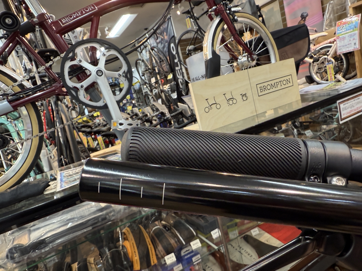 BROMPTON純正Midハンドルに130mmのグリップを取り付ける場合、ハンドルの長さが足りず取り付けの出来ないグリップが多いです。
