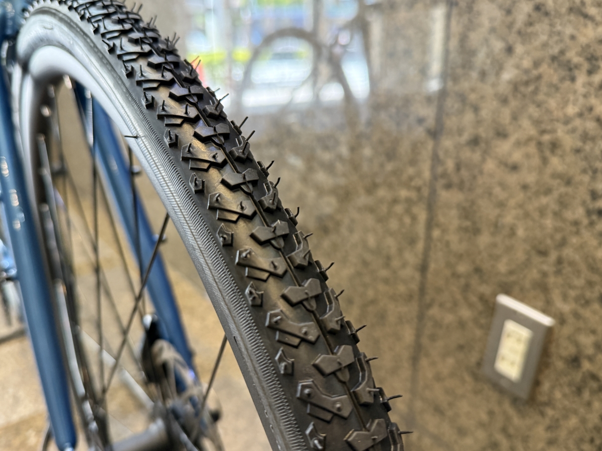 舗装路から未舗装路まで走行可能な ノブが低めのブロックタイヤとなっており耐久性や安定性にも優れています!