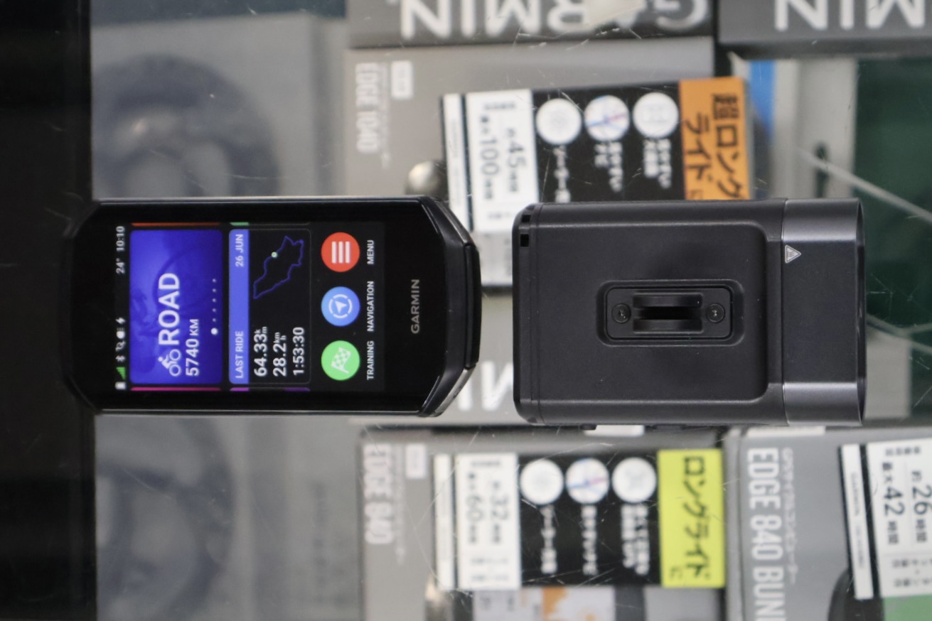 EDGE1050と並べてみるとこんな感じのサイズ感です。上下での取り付けになりますが、ハンドル周りに集中しているのがお分かりいただけると思います。