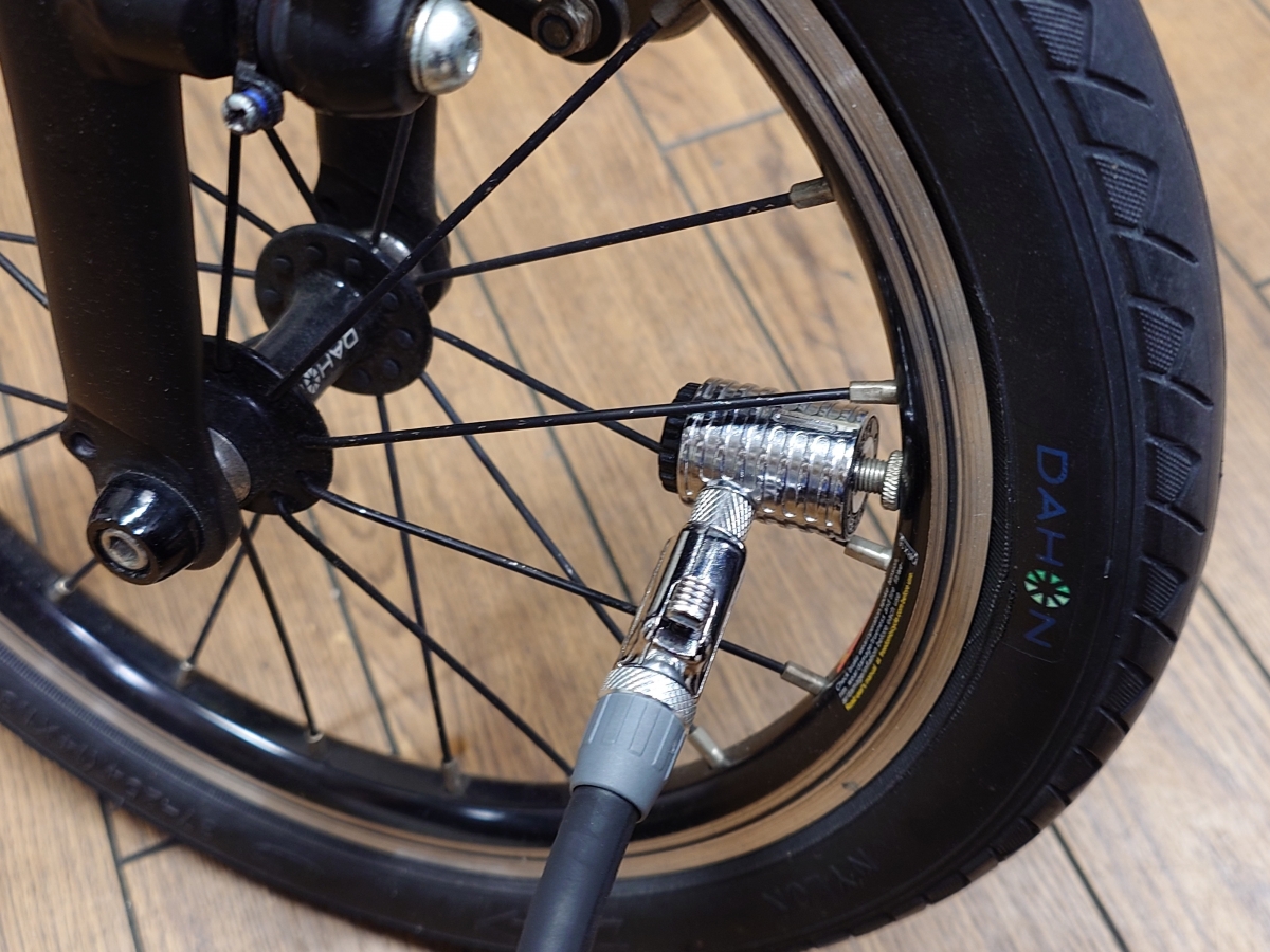 店頭にあるBROMPTON、DAHON K3と空気を入れてみましたがその手軽さは歴然!