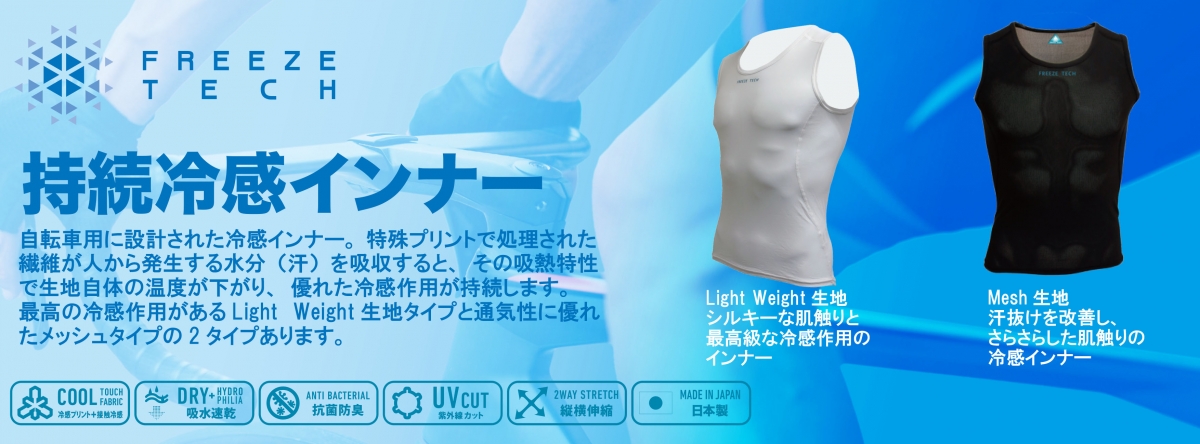 また、タイトなサイクルジャージの下に着ても違和感がないよう、薄手で軽量な肌触りの良い最高級素材を採用しています。