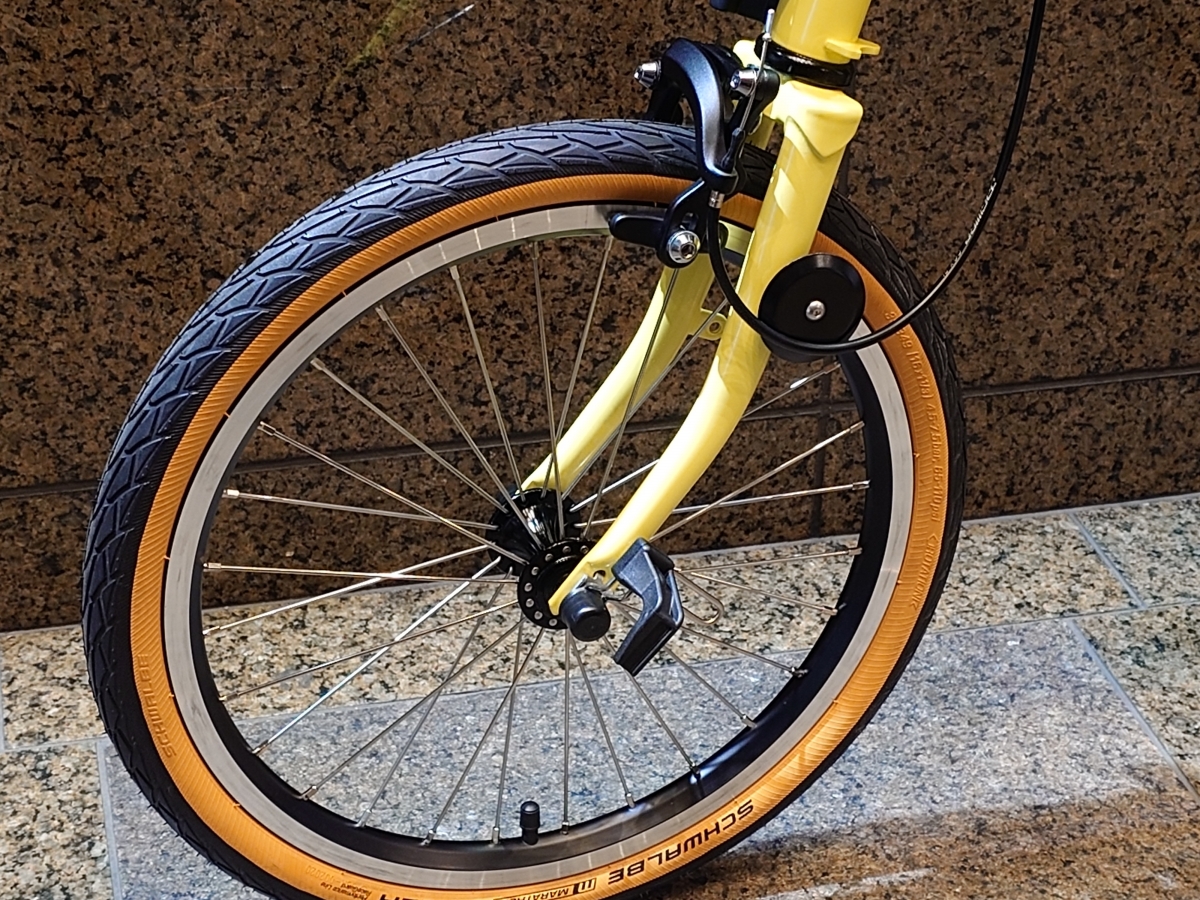 泥よけのステーに折り畳みのフックが付いているのと、ハンドルを右に切るとタイヤとブレーキワイヤーが接触するので追加のパーツを用意する必要があります。