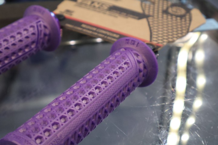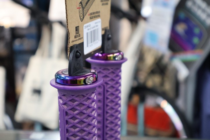 少し光沢感のある鮮やかなパープルのグリップ部分に、クランプ部分は見る方向によって色が変化するオイルスリックカラーとなっております✨