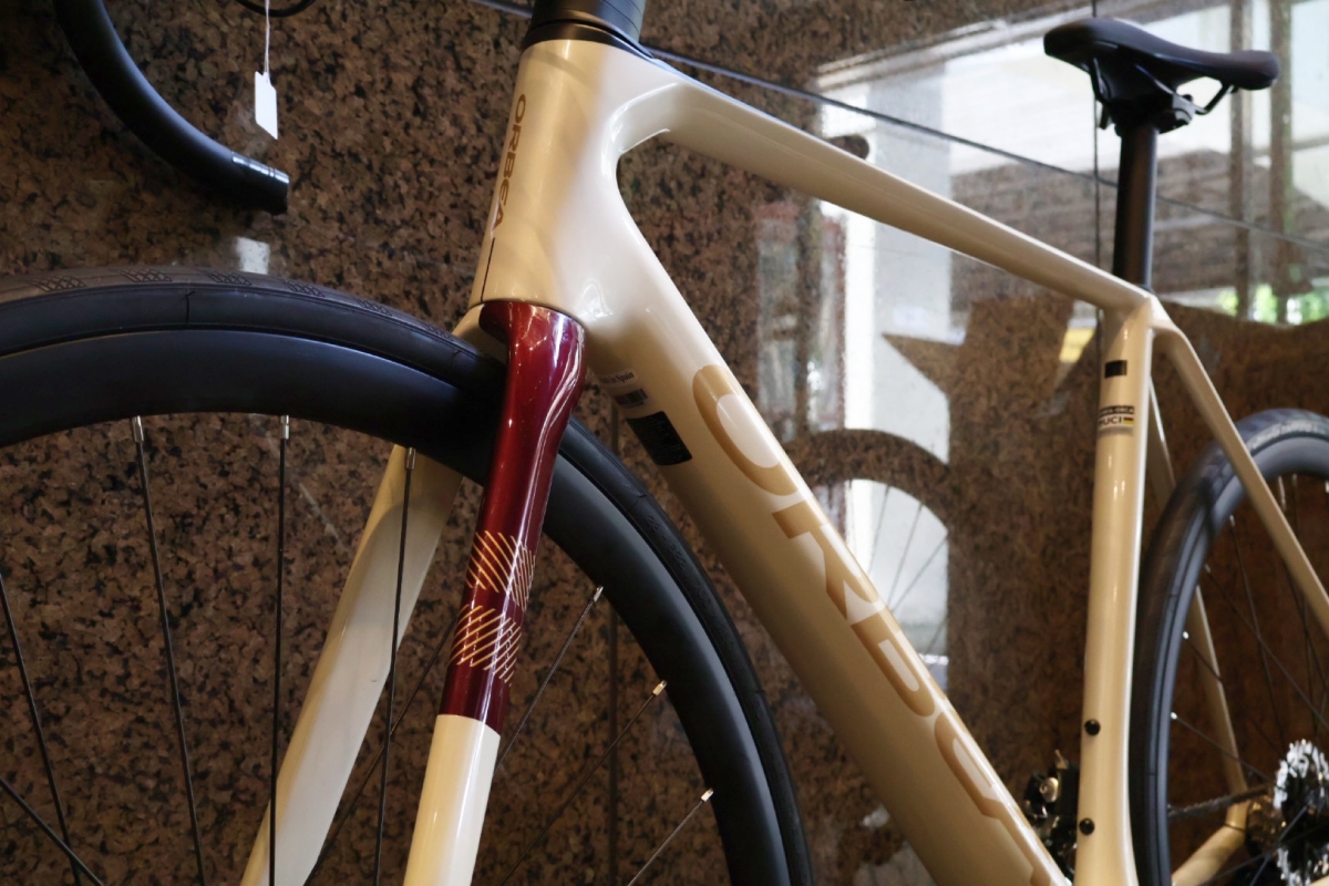 ORBEAのバイクはフォークにフレームと異なるカラーでアクセントを持たせたカラーが特徴的です。この色分けがされた仕様は現ロットで終了のようなので気になる方は是非実車をご覧いただけるといいのではないでしょうか♪