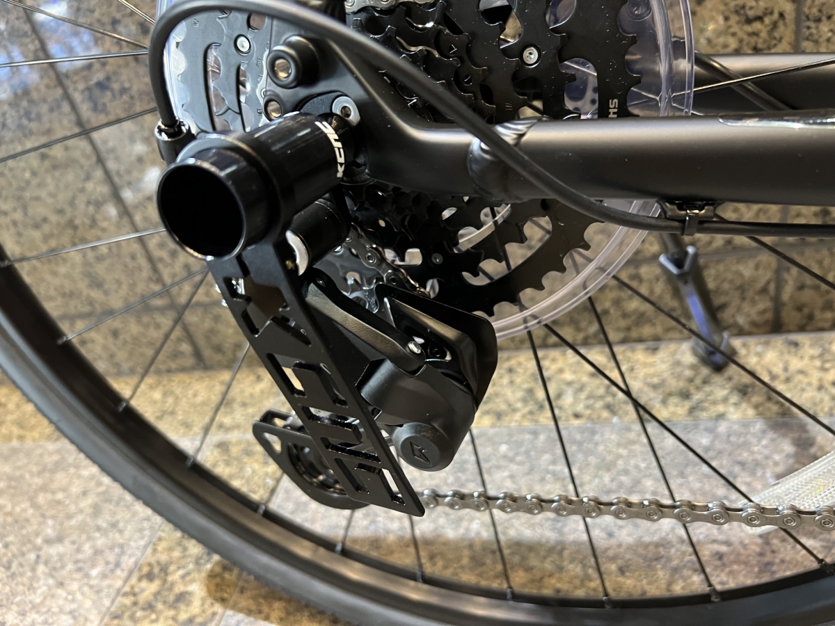 駐輪場での接触などアクシデントで車体を倒されてしまっても守ってくれるディレーラーガードも装着!その他アクセサリはこれから乗り出してから検討していくつもりですと伺いました。