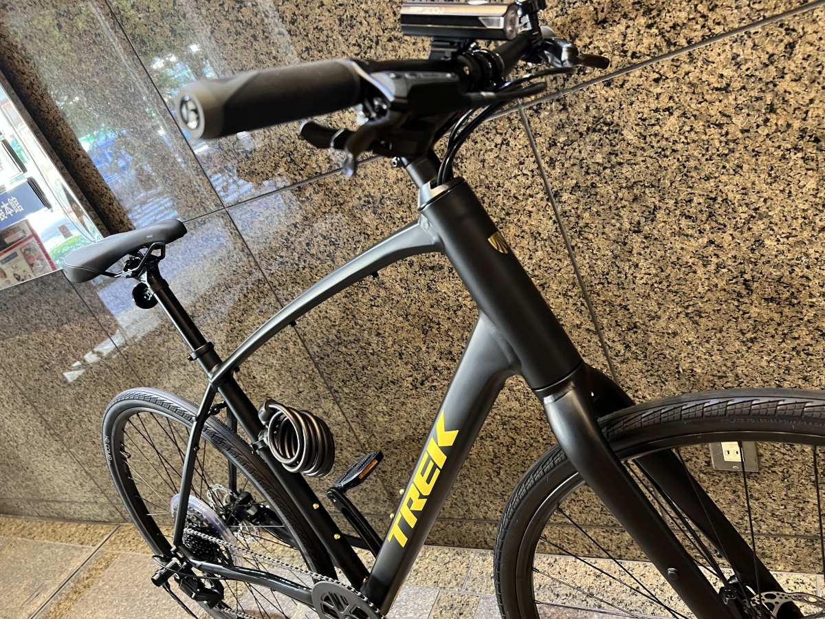 初めてのスポーツバイクとの事で元々は別のクロスバイクをご検討いただいていましたが、すらっとご身長が高くサイズの相性や車体の頑丈さに魅力を感じてコチラのバイクをご成約。FXシリーズはサイズラインナップも多く、重量制限も総重量で136㎏までと安心感があり、当店でも人気のバイクです。