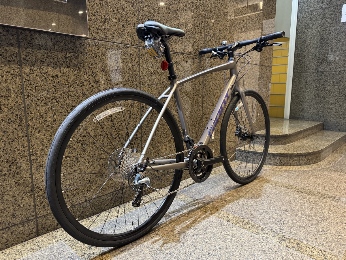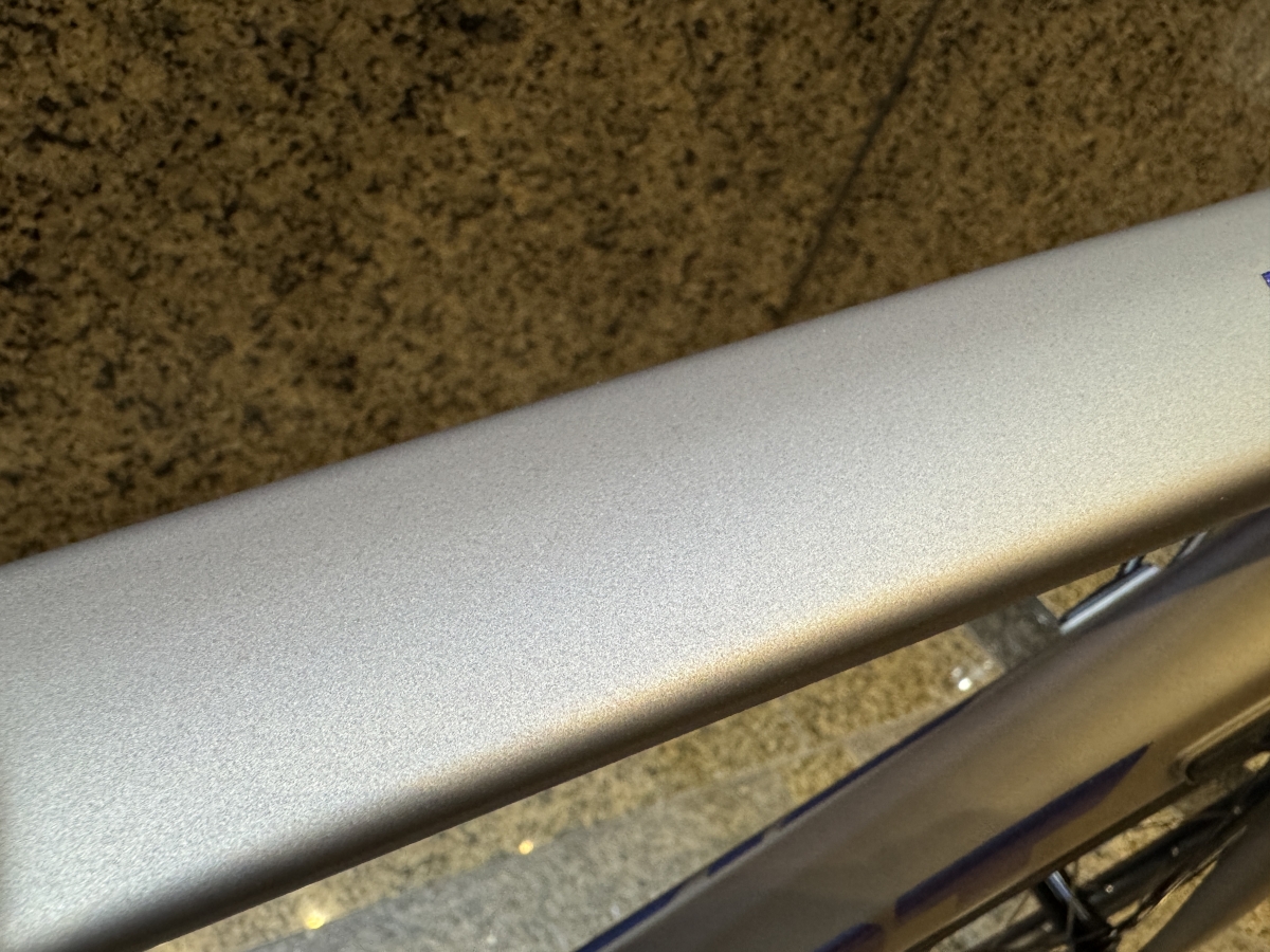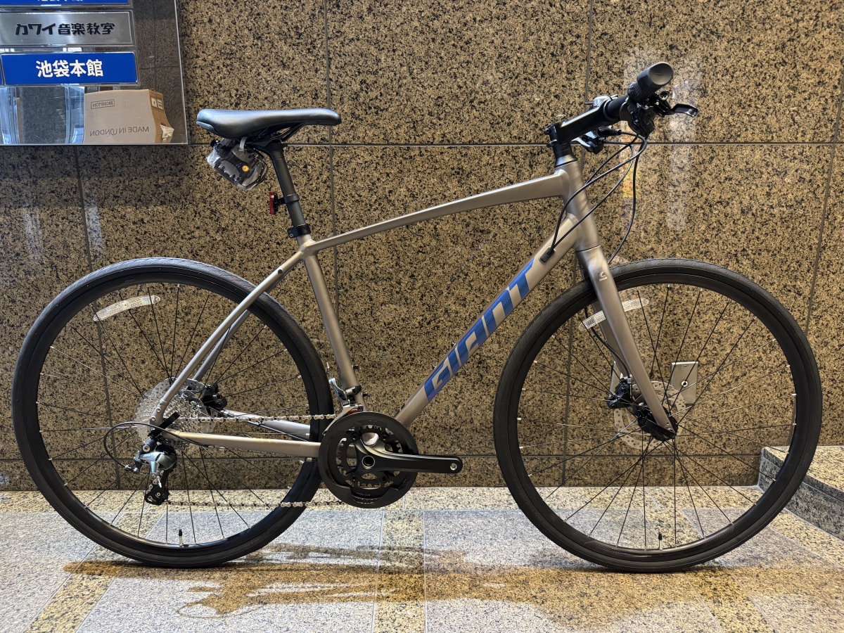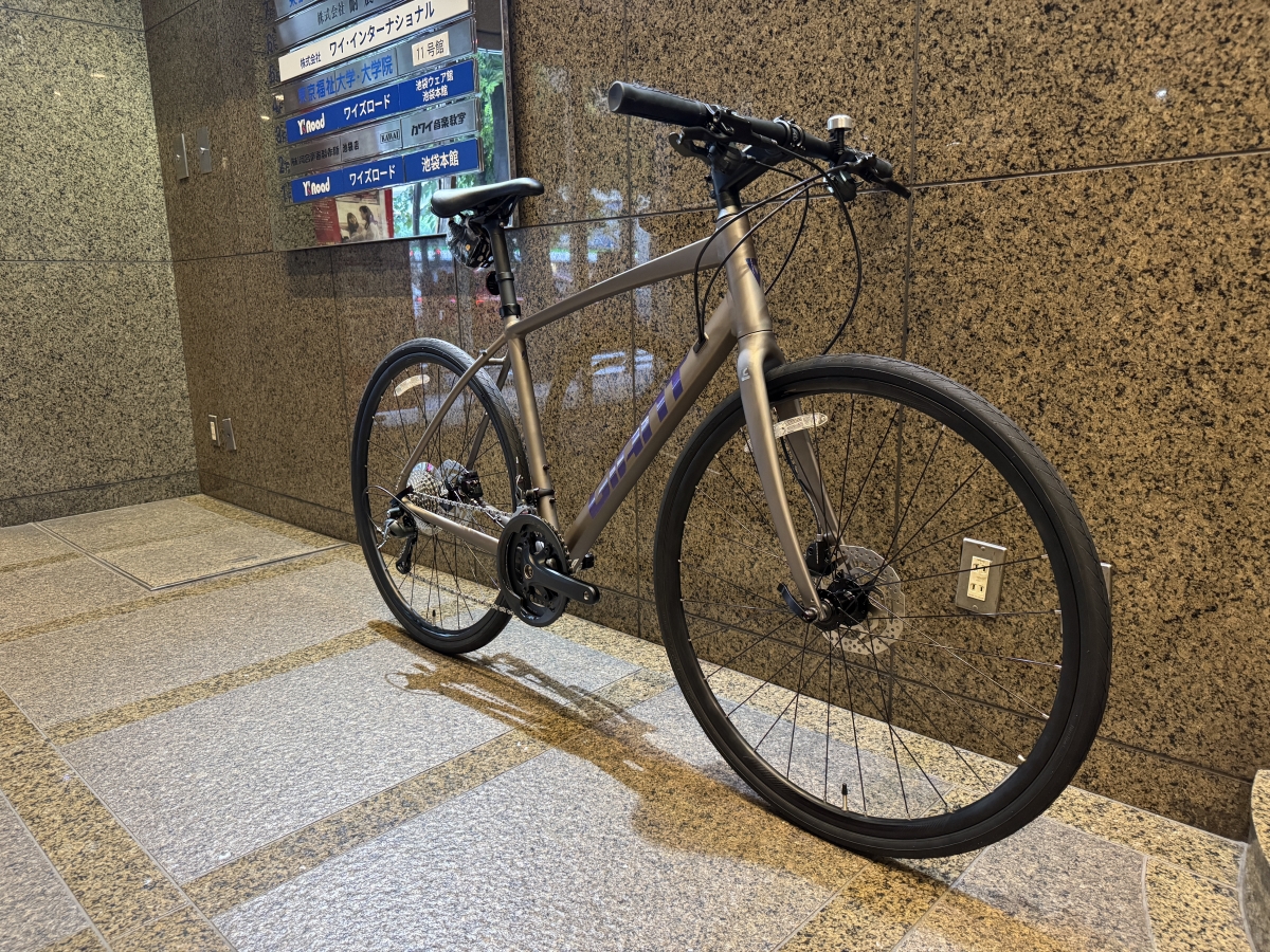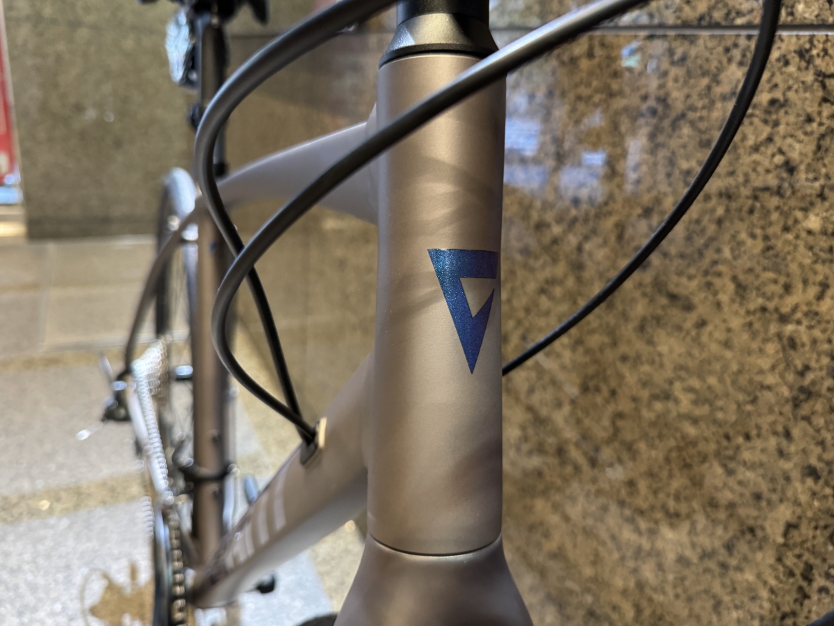 ジャイアントのハイエンドクロスバイクのESCAPE RX1 DISC!カラーの名称の通りフレームを希少金属のチタンのようなカラーリングにしダウンチューブのメーカー名やヘッドチューブのロゴなどはカメレオンカラーになっていて、とても高級感のある仕上がりになっています♪