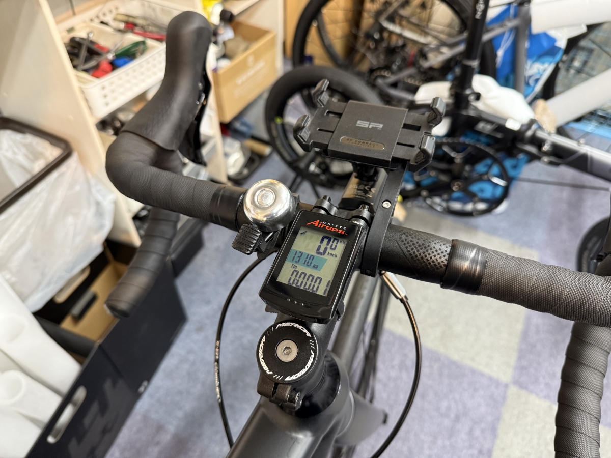 スマホでナビをしつつ距離・スピードはサイコンで確認したいとのご要望を頂きましたので各部マウントでハンドル周りをスッキリとまとめました!