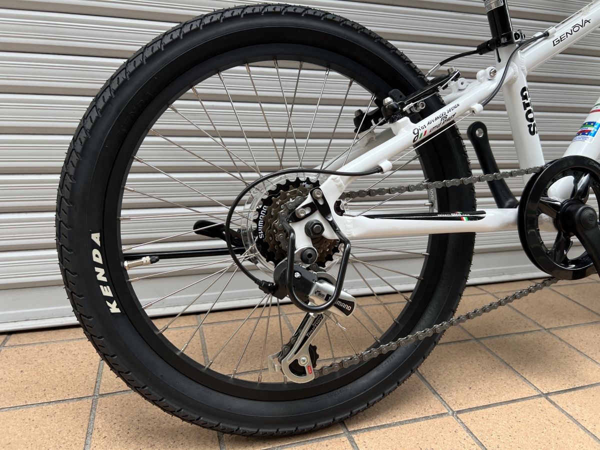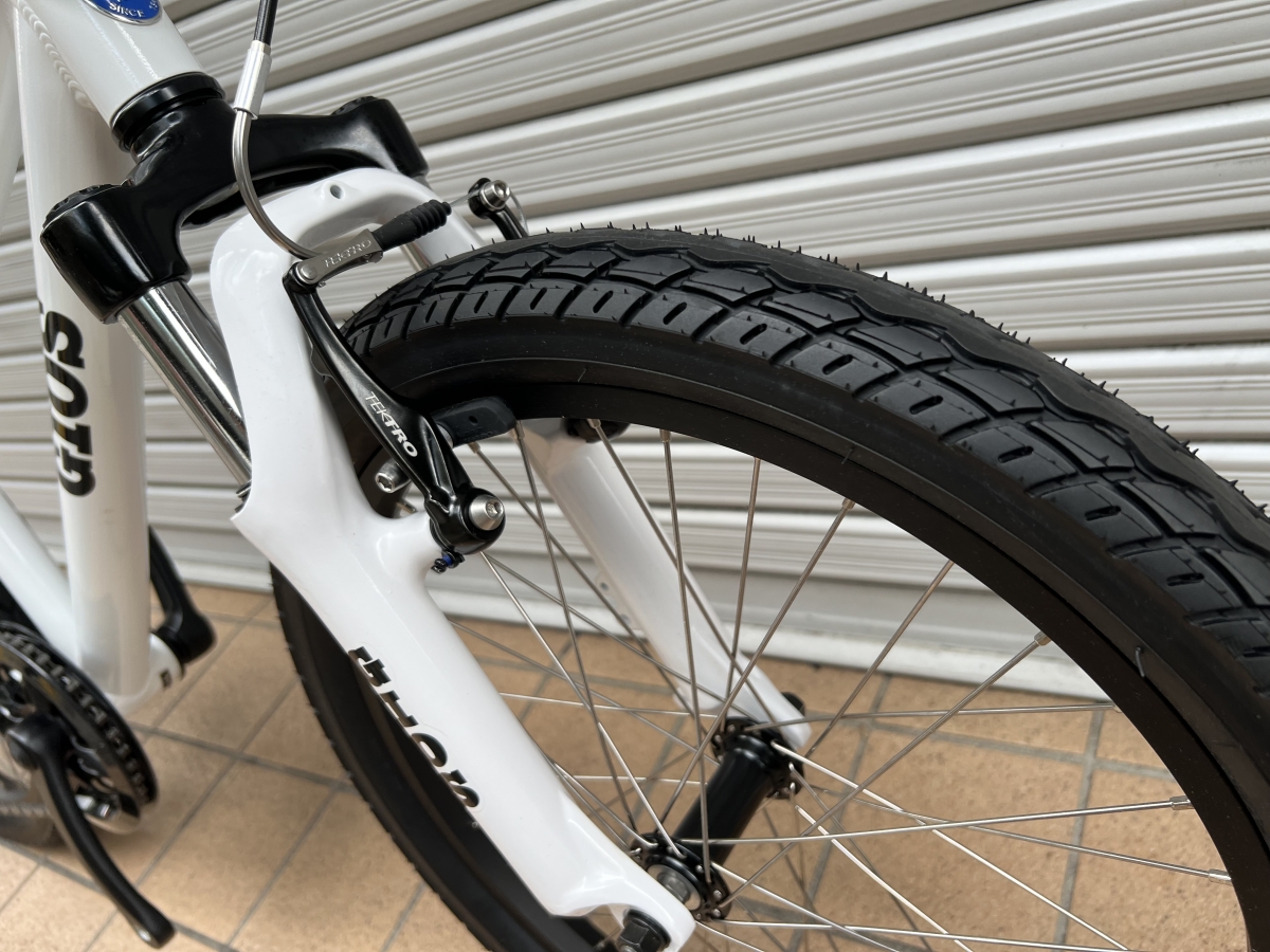 ホワイトのフレームにブラックロゴがシンプルな一台です。カラーカスタムも出来るのでご相談ください!