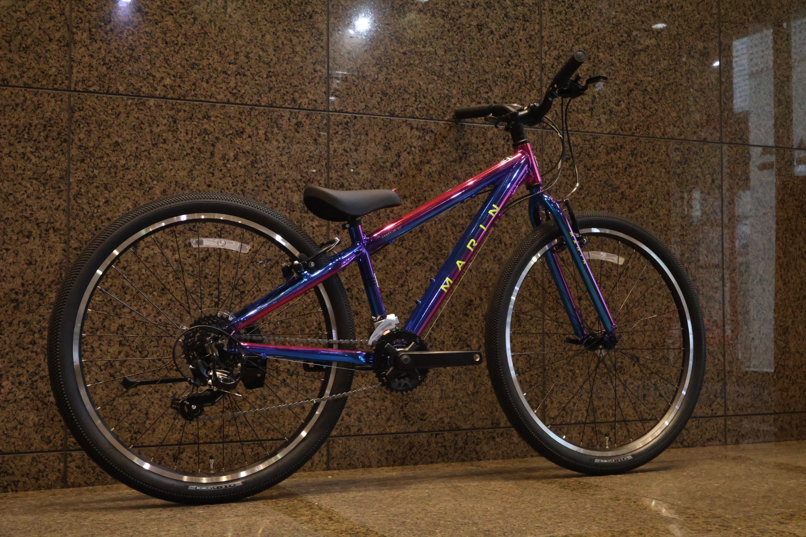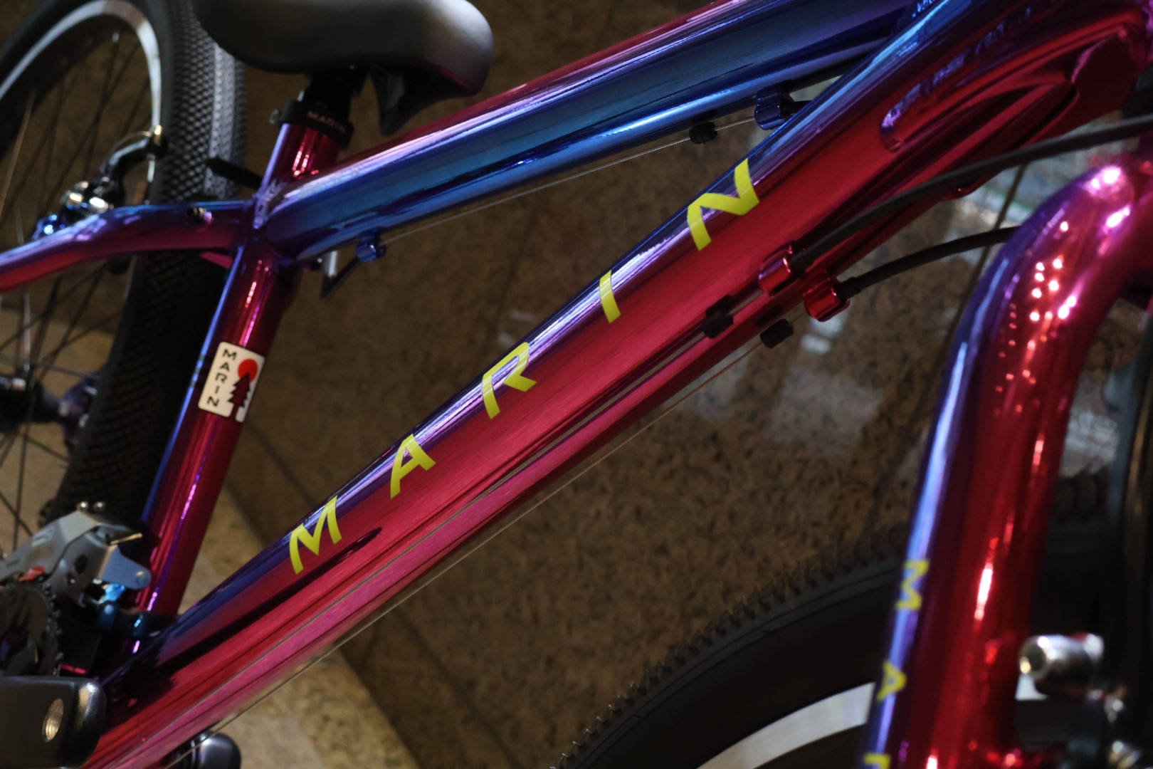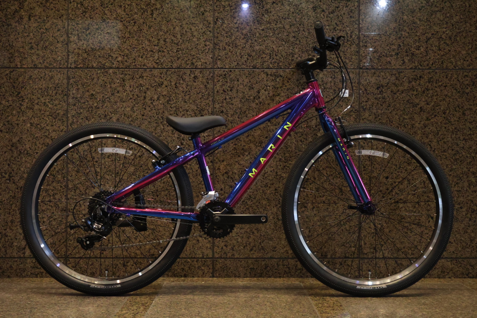 見るからにキラキラなこのカラーは”GALAXY/ギャラクシー” 光沢感のあるグラデーションはレッドからブルーへのツートンカラーで、他ブランドではないオリジナリティのあるモデルです♪MARINのキッズバイクに採用される宇宙をモチーフにしたリミテッドカラーは注目度も高く、お子さんからの人気もあるオススメのカラーです☆