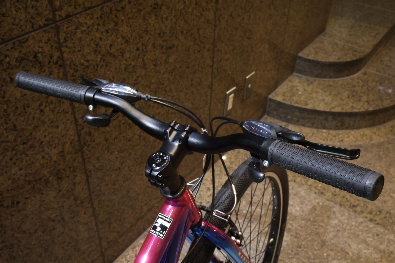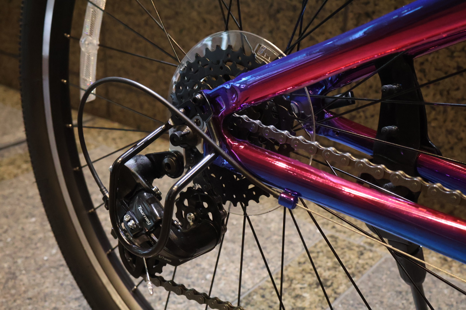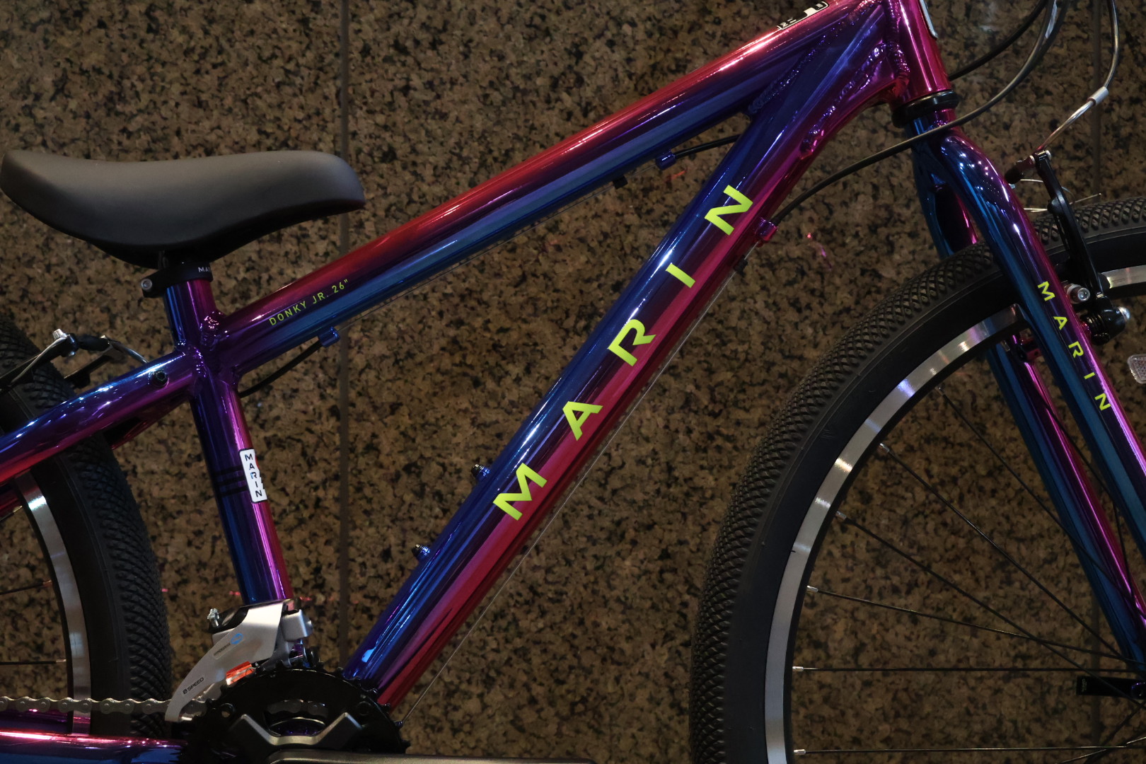 見るからにキラキラなこのカラーは”GALAXY/ギャラクシー” 光沢感のあるグラデーションはレッドからブルーへのツートンカラーで、他ブランドではないオリジナリティのあるモデルです♪MARINのキッズバイクに採用される宇宙をモチーフにしたリミテッドカラーは注目度も高く、お子さんからの人気もあるオススメのカラーです☆